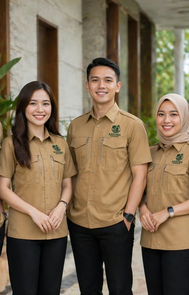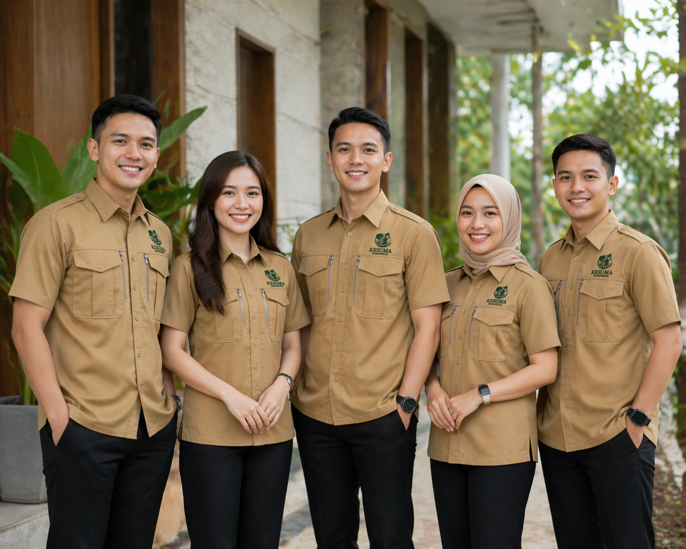 Diproduksi dengan sistem, bukan asal jahit. Cocok untuk perusahaan, komunitas, dan tim proyek.